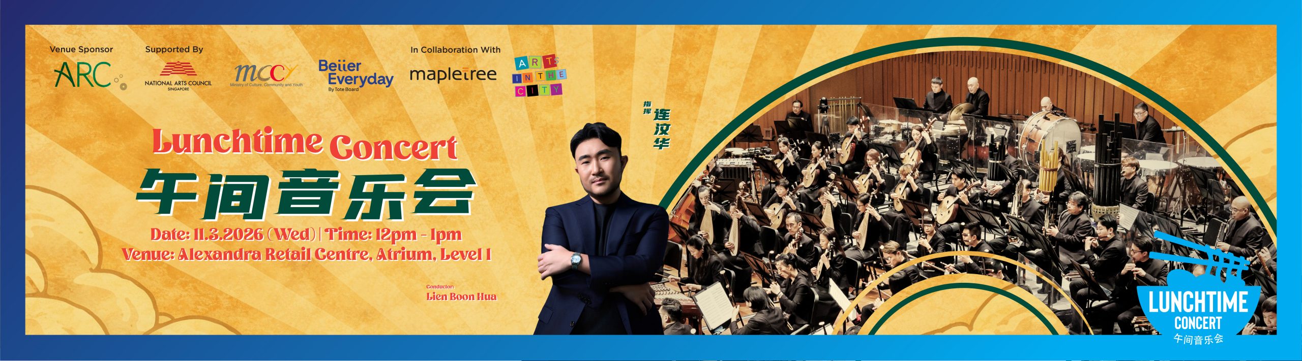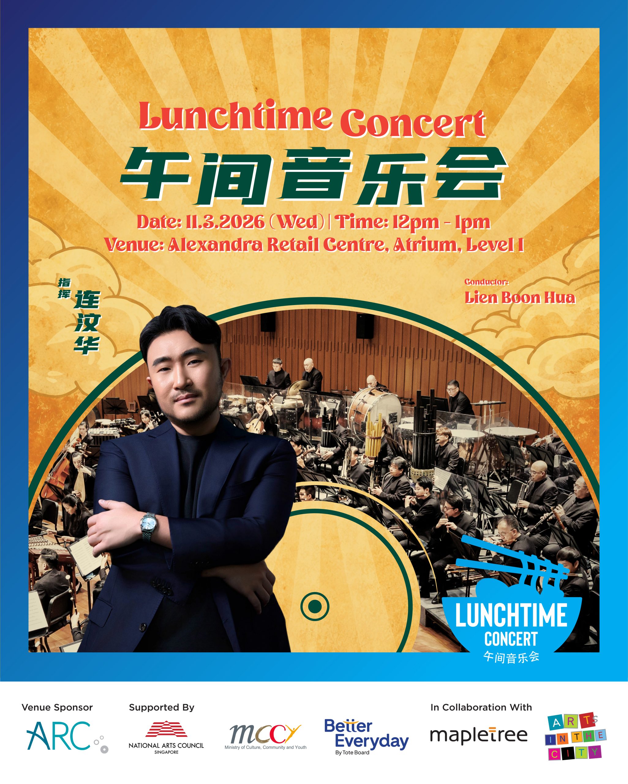 Singapore Chinese Orchestra returns for the second year running to present an engaging Lunchtime Concert as part of Mapletree Arts in the City at Alexandra Retail Centre (ARC). Led by SCO Associate Conductor Lien Boon Hua, the orchestra will perform a selection of beloved classic pop favourites, including The Bund, Moonlight in the City, Medley of Singapore Chinese Pop, and more.